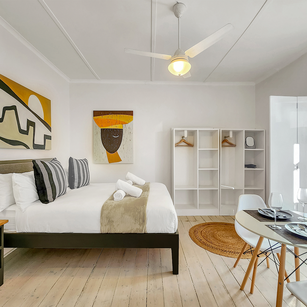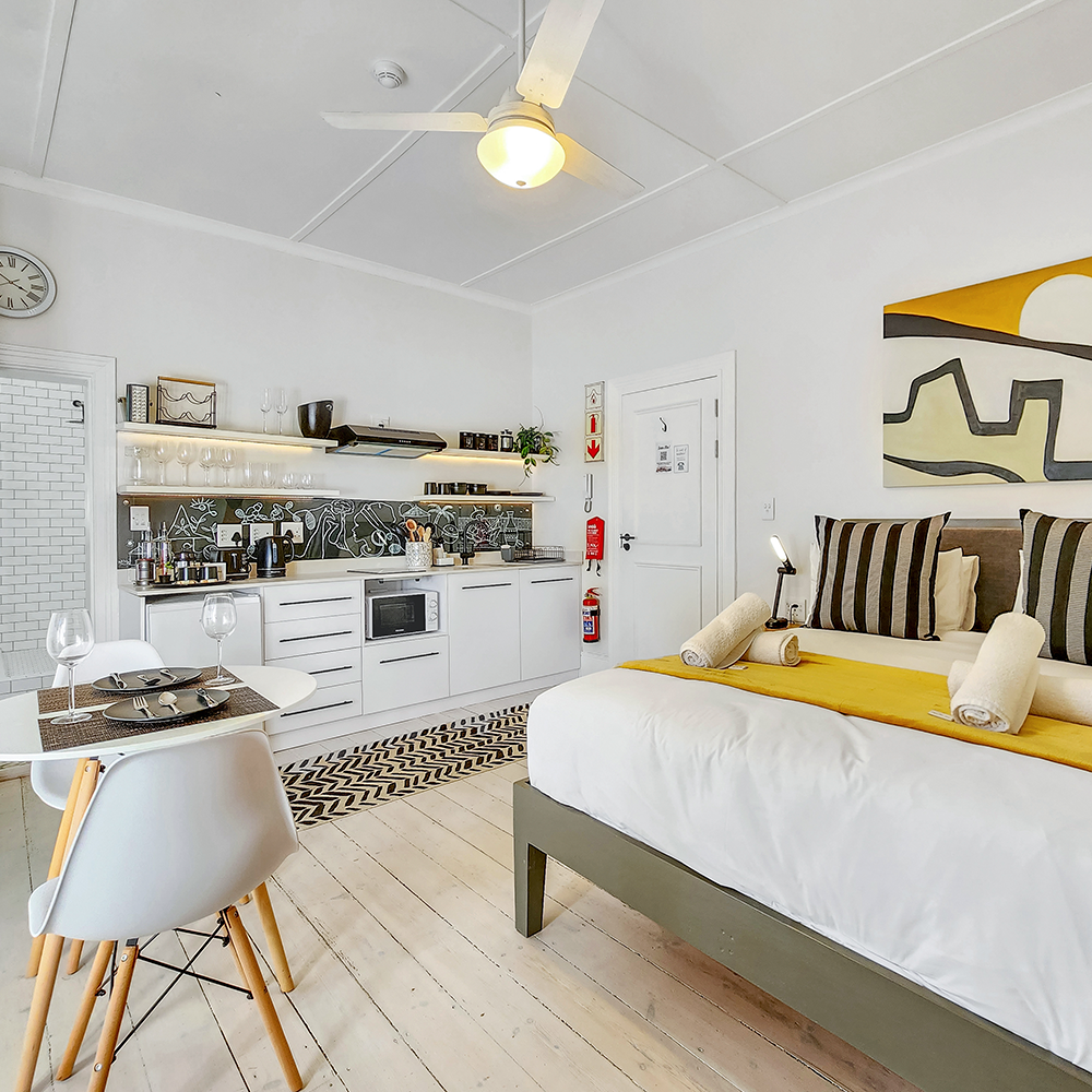 This studio apartment showcases contemporary African design and is perfect for solo travellers and couples as a convenient base to explore Cape Town. Central to all Cape Town tourist spots, UCT and Groote Schuur Hospital. A wide range of restaurants, coffee shops, delis and bars with live music are on your doorstep, offering an array of culinary options. Cape Town City Centre and International Airport are only 15 minutes away.